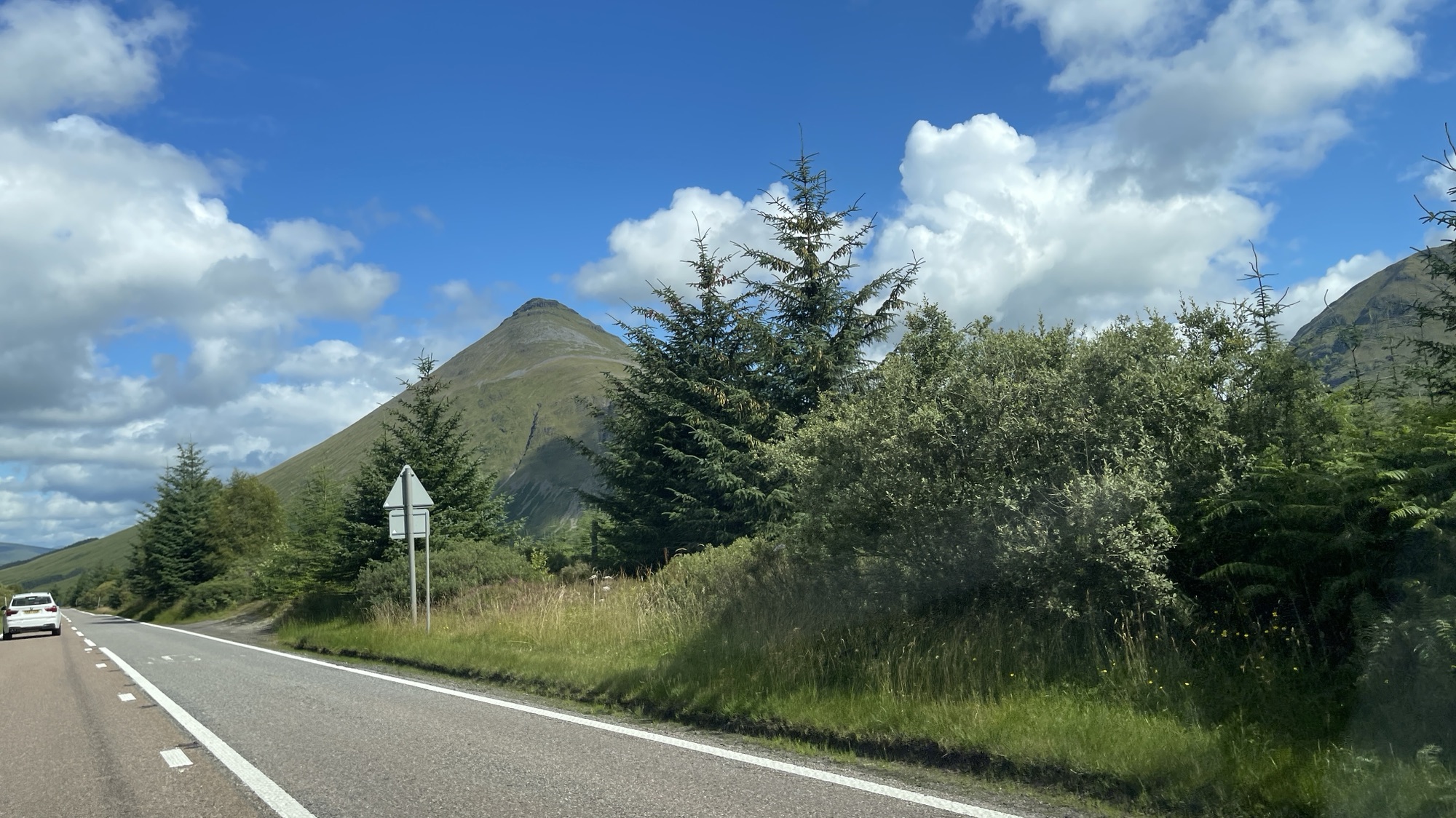 All our bits and pieces sind nun wieder im Auto und weiter geht’s! Unser Ziel ist unsere Blockhütte Stronaba. Wir nehmen die „Bundesstraße“ in Richtung Glencoe und Fort Williams. Hier gibt es auch wieder einen Supercharger. (Entgegen anfänglicher Befürchtungen haben wir bisher übrigens überall problemlos „tanken“ können. Das Netz von Charge Places Scotland ist relativ gut ausgebaut – wenn auch teils mit 50 kWatt Säulen. Mit einem Einkauf im Supermarkt aber gut kombinierbar. )