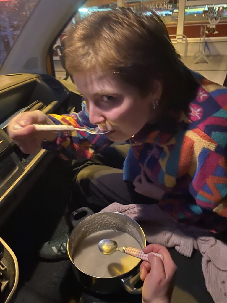 Abends haben wir dann noch Taschi und Luciano in Fürstenwalde abgeholt…und dabei Grießbrei gemampft.