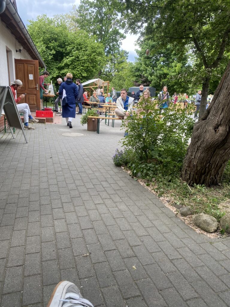 …bin ich mit Jakob Vianney und Lara zum Hof Marienhöhe gefahren, wo heute einKräutermarkt zusätzlich zum Hofladen da war…