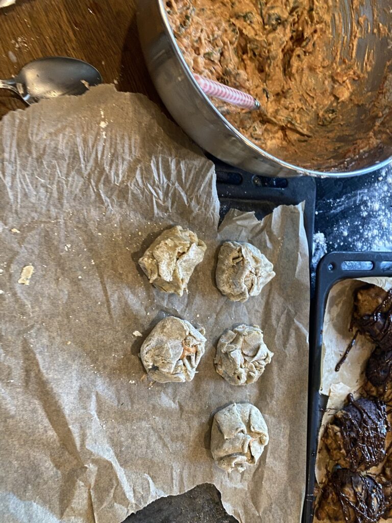 Ich habe glutenfreie Teigtaschen mit Oliven Zwiebel Käse Füllung und Muffins gebacken…